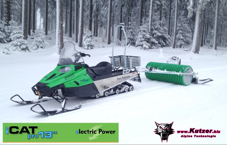 iCATpro13ZEZero Emission TechnologyDer iCATpro13 ZE ist der erste in Serie gebaute Elektro-ArbeitsschlittenAufgebaut auf dem Bearcat Chassis von Arctic Cat, verbindet er super Handling und Traktion mit modernstem Elektroantrieb.Das Drehmoment beträgt gewaltige 151 Nm, Ein 4-Takt Motor eines Arbeitsscglitten mit 123 PS hat nur ca. 100 Nm.Das besondere ist aber die intelligente Motorsteuerung, der E-Schlitten bringt seine Leistung fein dosiert in den Schnee.Der enorm tiefe Schwerpunkt verhindert zudem kritische Fahrsituationen.Preis25 500 Euro netto, gebrauchte ab 15 000 Euro nettoReichweiteDie Reichweite beträgt 20-40km, abhängig vom Fahrstil, und dem GeländeGewichtMit 360 kg Gewicht ist der I-Cat Schlitten genauso schwer wie ein Verbrennermodell. Akku LadungMit Ladekabel an normale Haushalts-Steckdose (220V 15A) und dauert 4-5 Stunden. Nach gut einer Stunde sind aber schon 30% nachgeladen, Teilladungen schaden dem Akku nicht.Mit den optinal erhältlichen 230/400V Ladegerät dauert eine Ladung nur noch 2 StundenAkku LebensdauerDie erprobten Lithium-Akkuzellen aus der Flugzeugindustrie verfügen nach ca. 5000 vollständigen Ent- und Aufladungen über eine Restfähigkeit von 70 %. Bei einer Saison-Benützung von 200 Tagen wären das 25 Jahre. Akku Preis4125 Euro (33 Zellen je 125 Euro) Stand 2015 (ohne Montage) Ladekosten / VerbrauchPro 100 km 20 - 30 kWh 100 km j Wartungskostendeutlich günstiger als mit Verbrennungsmotor, kein Motorölwechsel, Varioriemen, Kühlflüssigkeit, etc.HöchstgeschwindigkeitLiegt abgeregelt bei 70 km/h und ist frei programmierbar.Ein großer Schwerpunkt der Entwicklung lag bei Software und dem Akkumanagement.So wird jede Zelle einzeln überwacht. Der Akku verfügt über eine Heizung.Wenn der Akku leer wird reduziert sich die Geschwindigkeit so das ein Rückkehr an die nächste Steckdose gesichert ist.Ein Display Informiert jederzeit über alle wichtigen Parameter.Der ICat Pro wurde erst nach über 3 Jahren Entwicklung und Erprobung im Frühjahr 2015 auf der Interalpin vorgestellt.Der hohen Investition steht ein Arbeitsgerät gegenüber das bei Null Emission (Lärm und Abgas) mit sehr günstigen Betriebskosten zu betreiben ist.Ein Arbeitsschlitten mit Verbrennungsmotor benötigt um die 20-30 Liter Benzin /100 kmDer I-Cat-Pro benötigt 20-30 kWh /100 kmDer Image Vorteil kommt noch dazu...